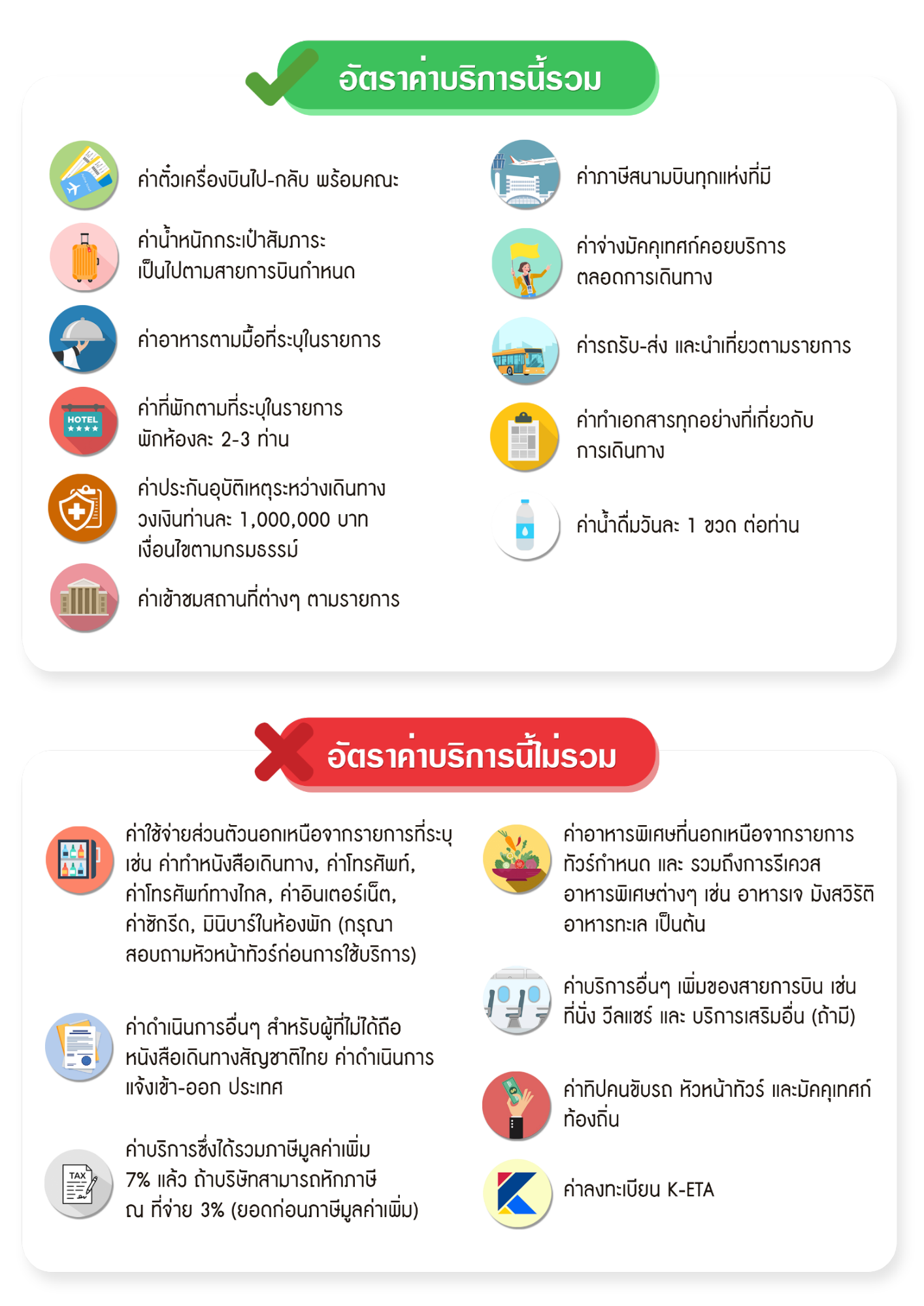 - ตั๋วเครื่องบินที่ออกเป็นกรุ๊ปไม่สามารถเลื่อนวันเดินทางหรือขอคืนเงินได้